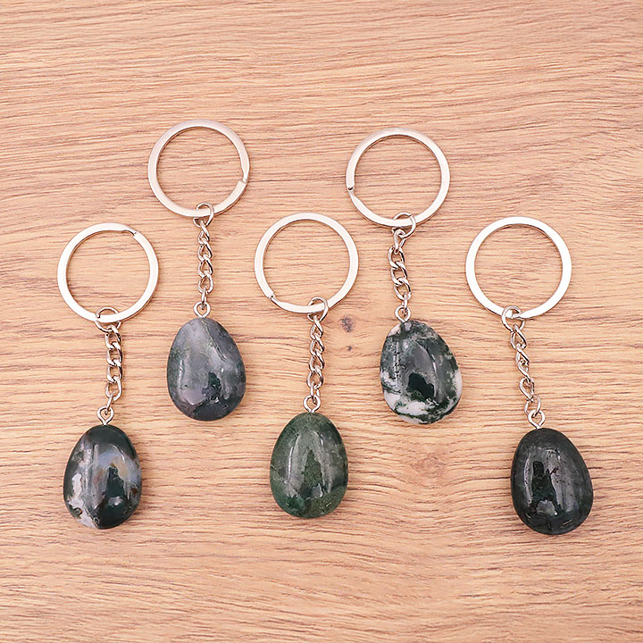 Llavero en forma de gota ágata musgo A (set de 5 piezas)