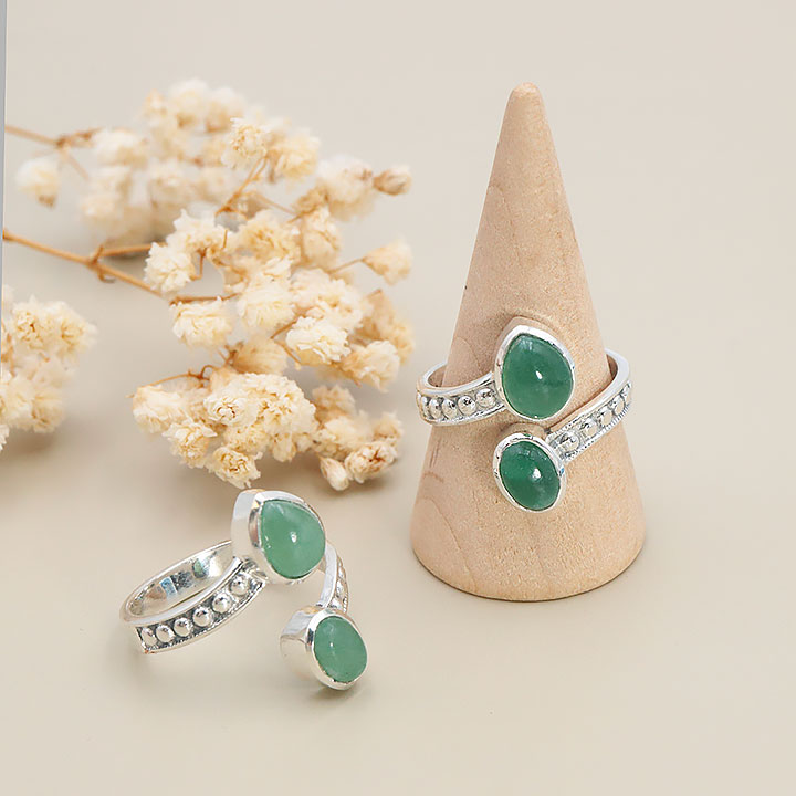 Anillo plata 925 modelo 04 aventurina verde A (1 pieza) set N°1A0525