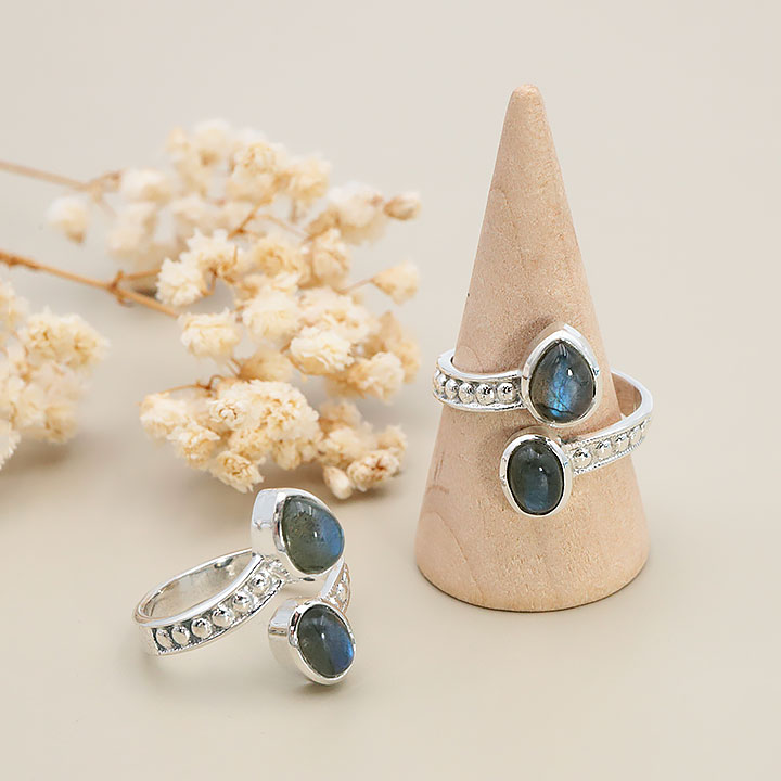 Anillo de plata 925 modelo 02 labradorita AA (1 pieza) set N°1A0525