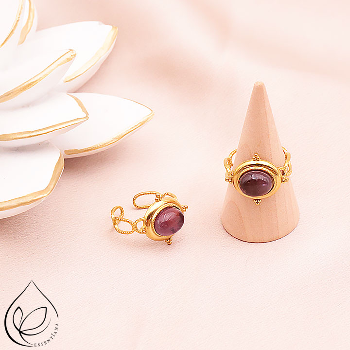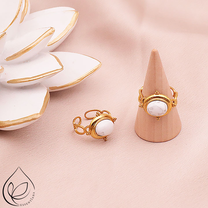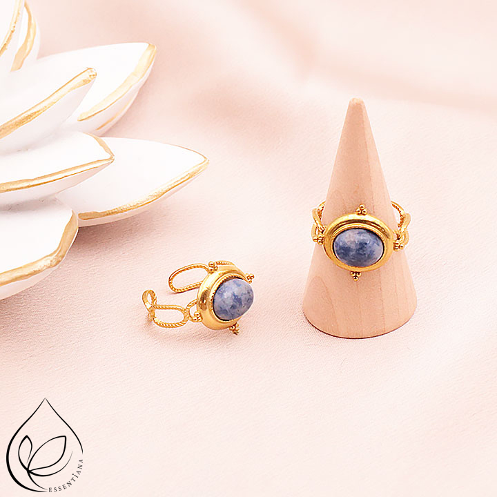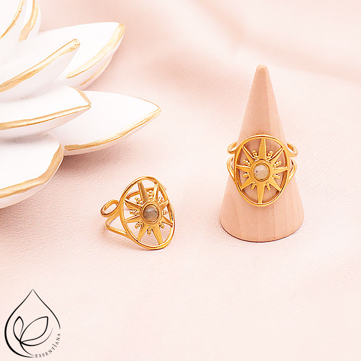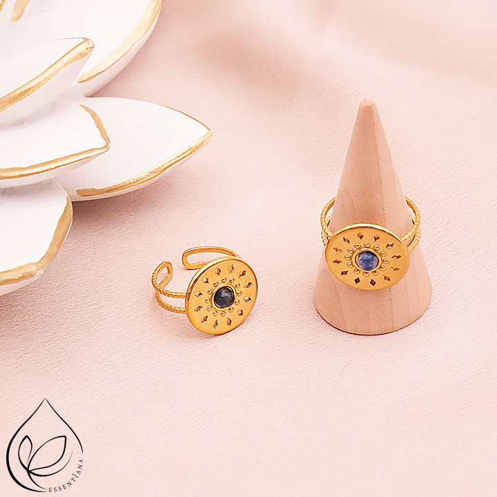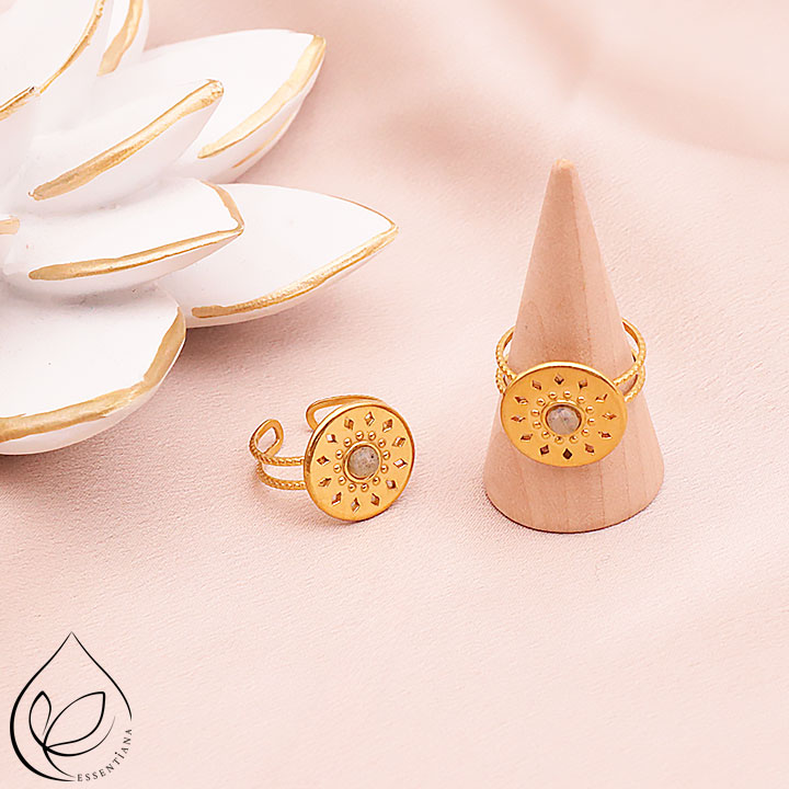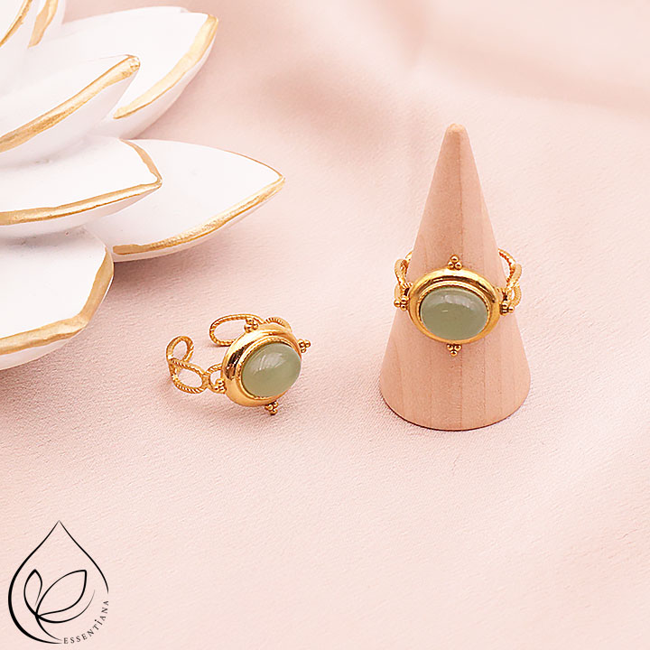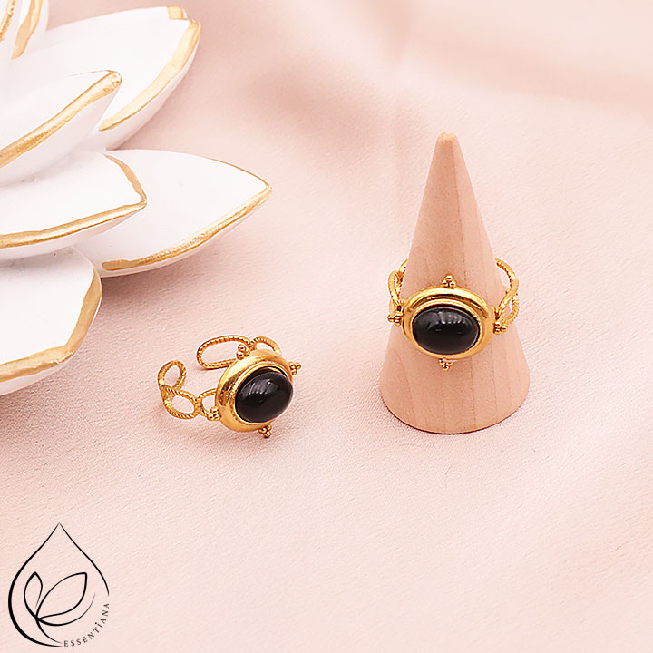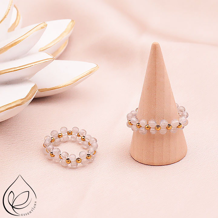 Anillo Ondine cristal de roca, ónix, jaspe dálmata A