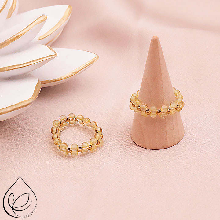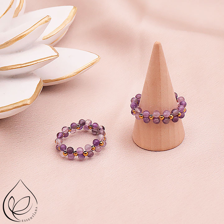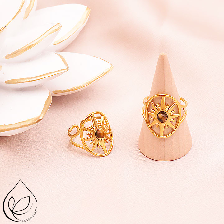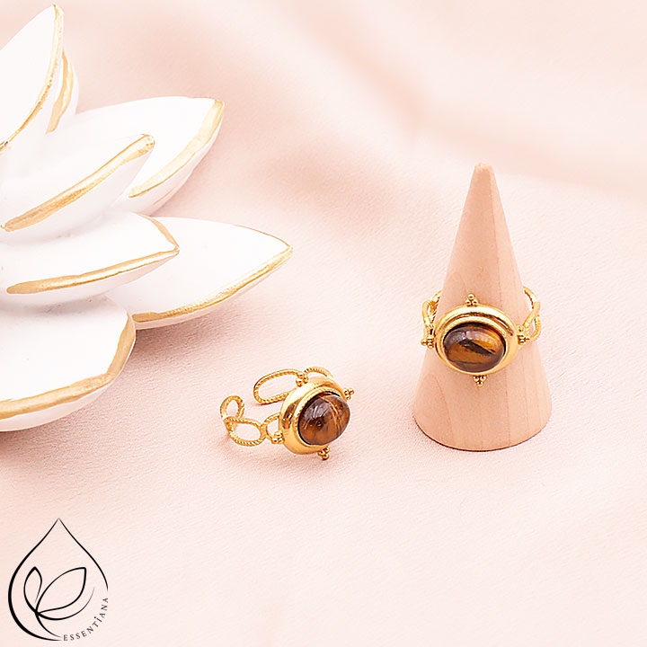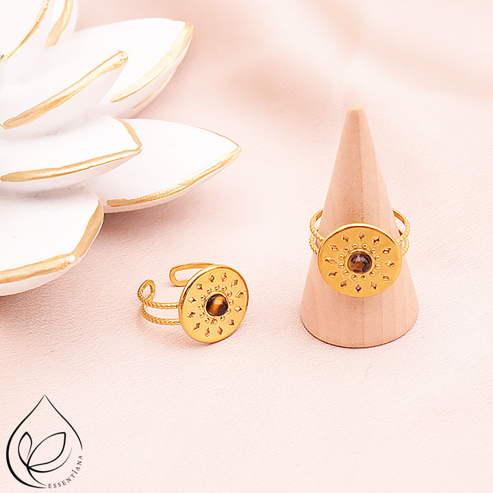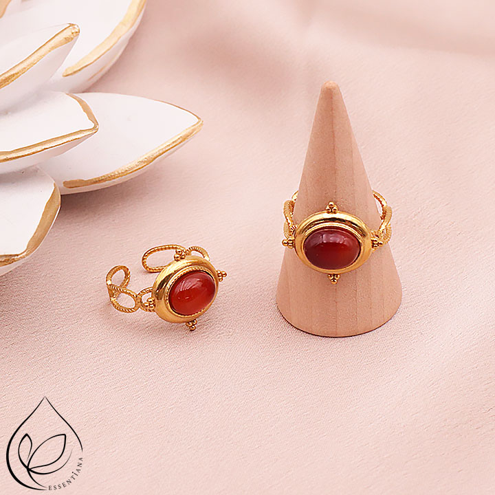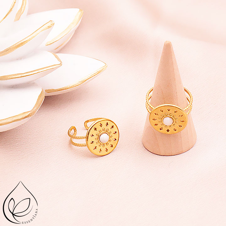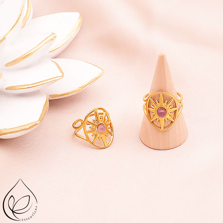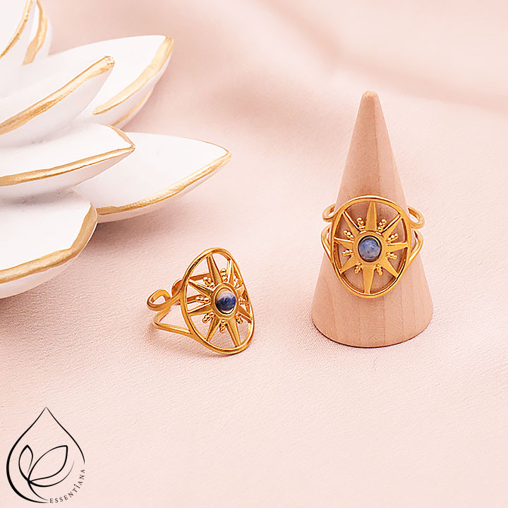 Anillo Ondine cristal de roca, ónix, jaspe dálmata A