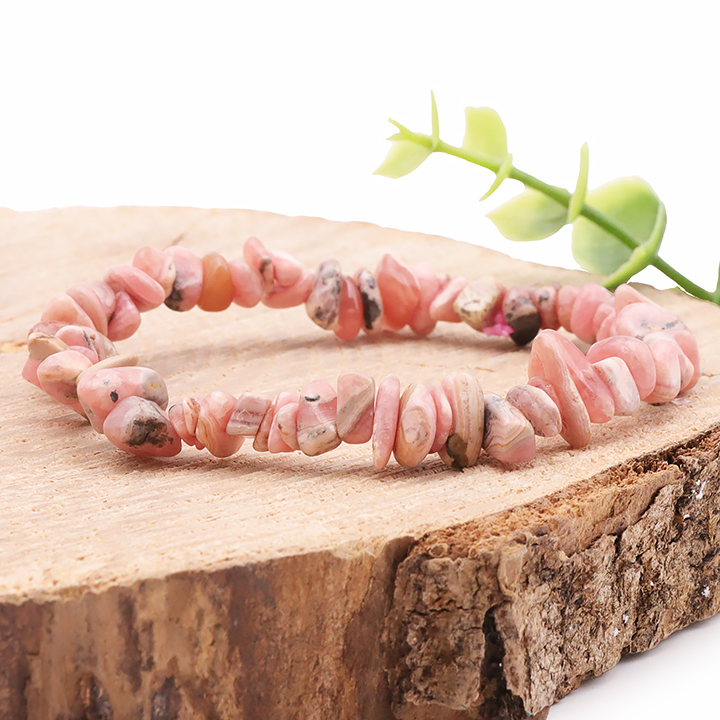 Brazalete de rodonita barroca Madagascar AB (set de 10 piezas)