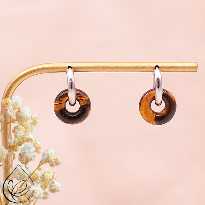 Pendiente de Loa plateado ojo de tigre A (1 par)