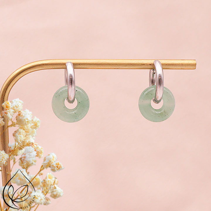Juego de aros Loa plateados aventurina verde A (1 par)