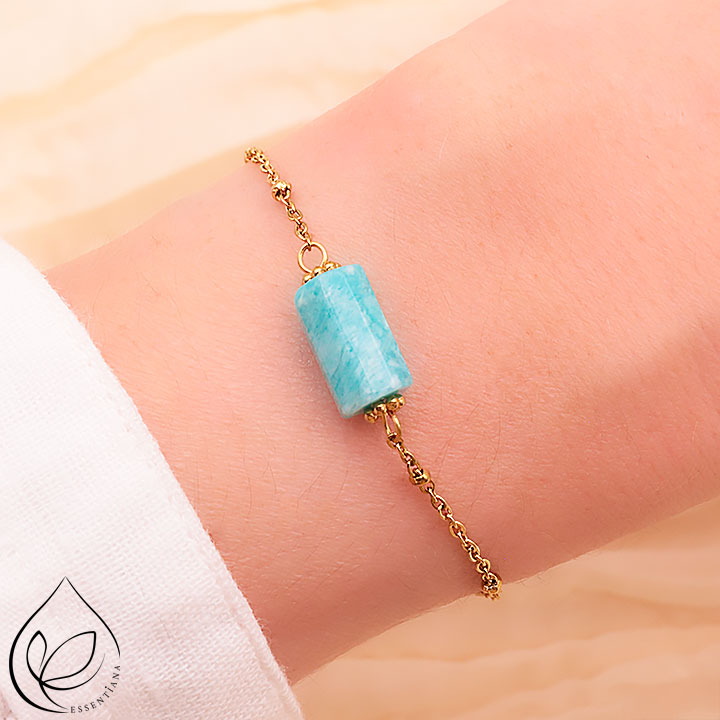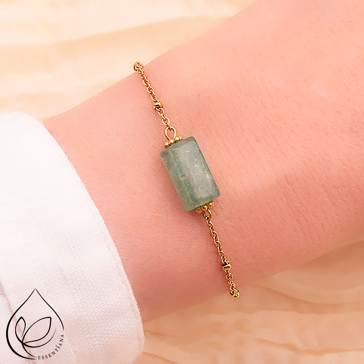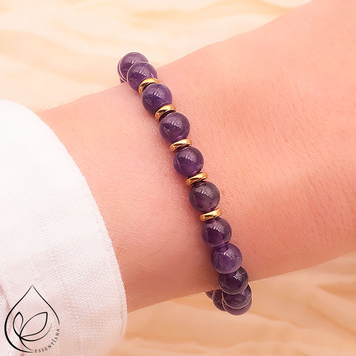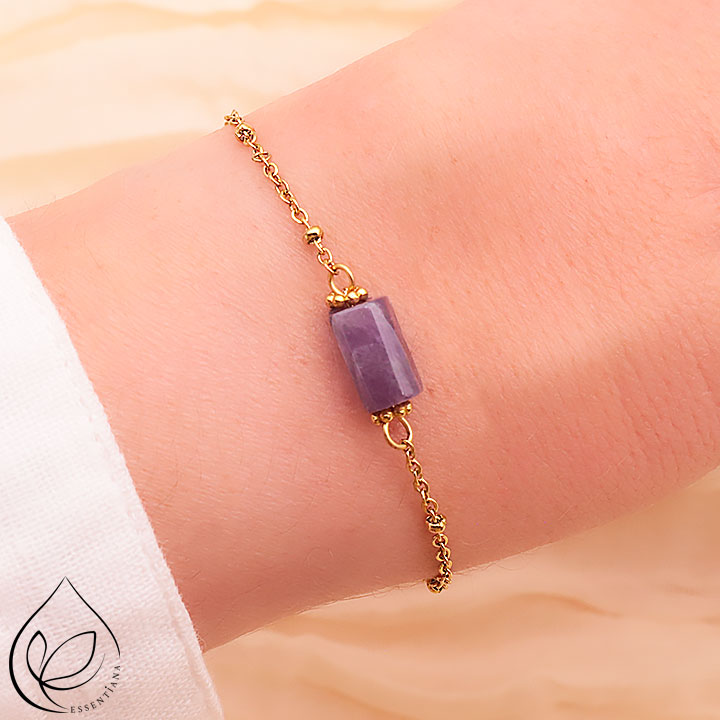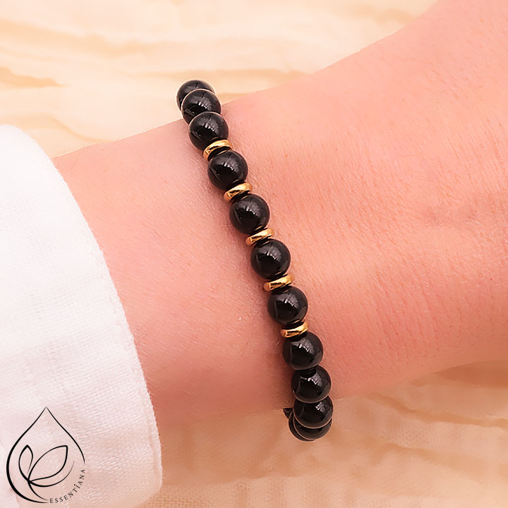 Brazalete Aska cuero negro piedra de lava, shungita A