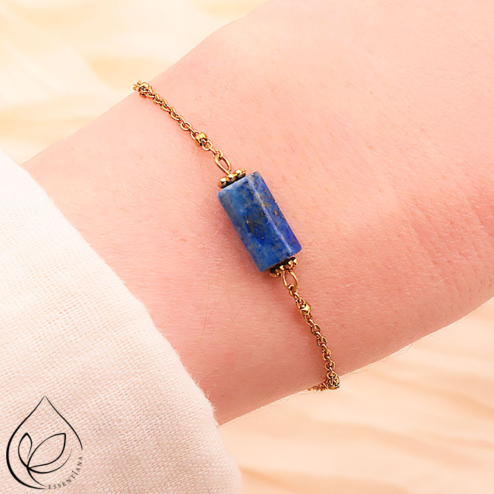 content:Pulsera Aska cuero negro lapislázuli, ónix A