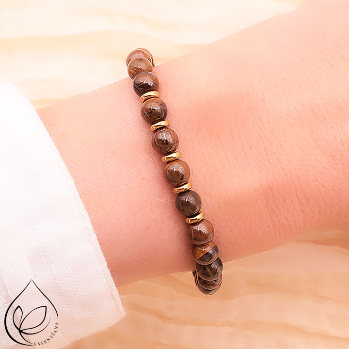 Pulsera Célyos plateada labradorita, ojo de tigre, hematita A