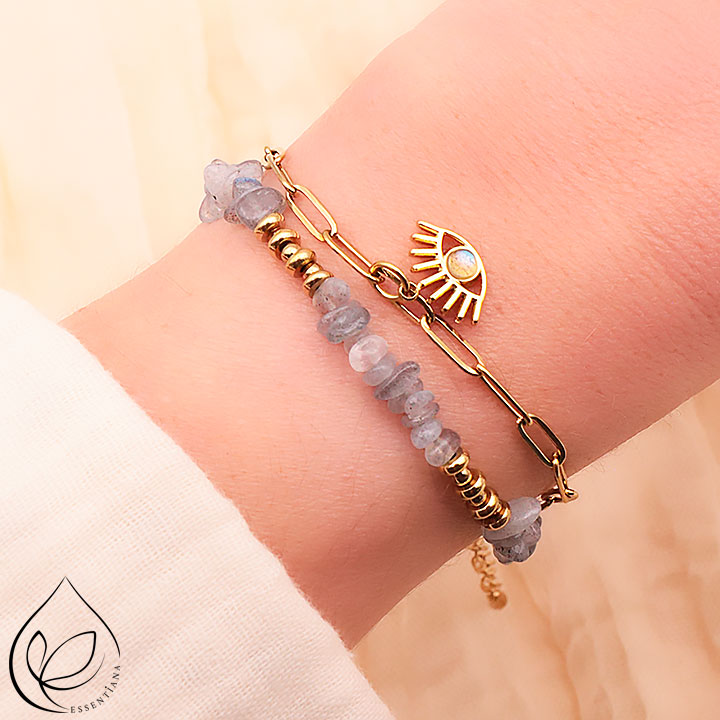 Brazalete Iris dorado cornalina, cristal de roca AA