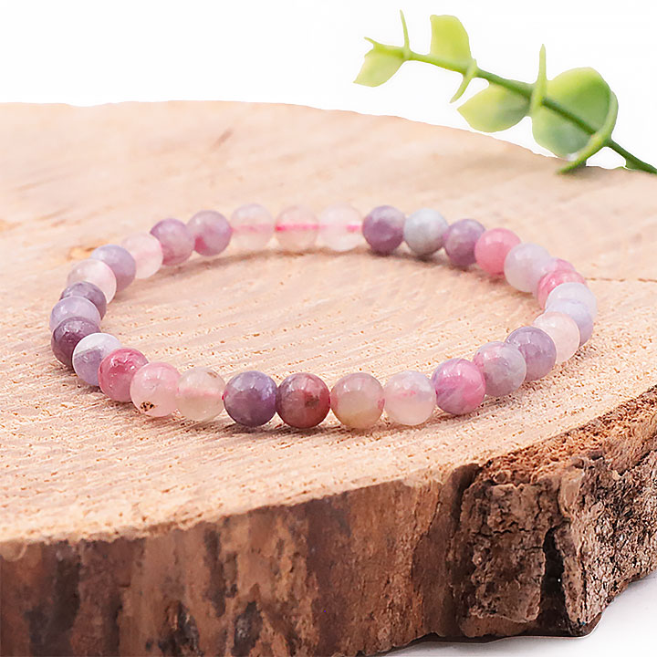 Pulsera de cuentas de 06mm turmalina rosa sobre eudialita A