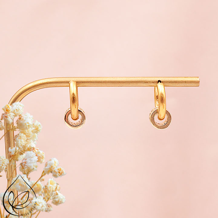 Pendiente Brillo Dorado Nácar, Circonio, Acero Inoxidable
