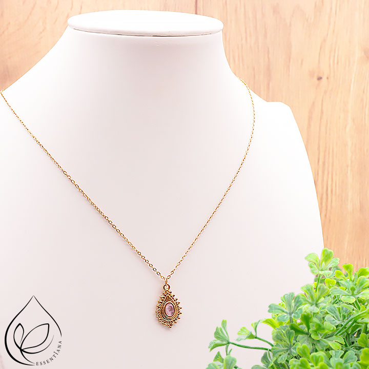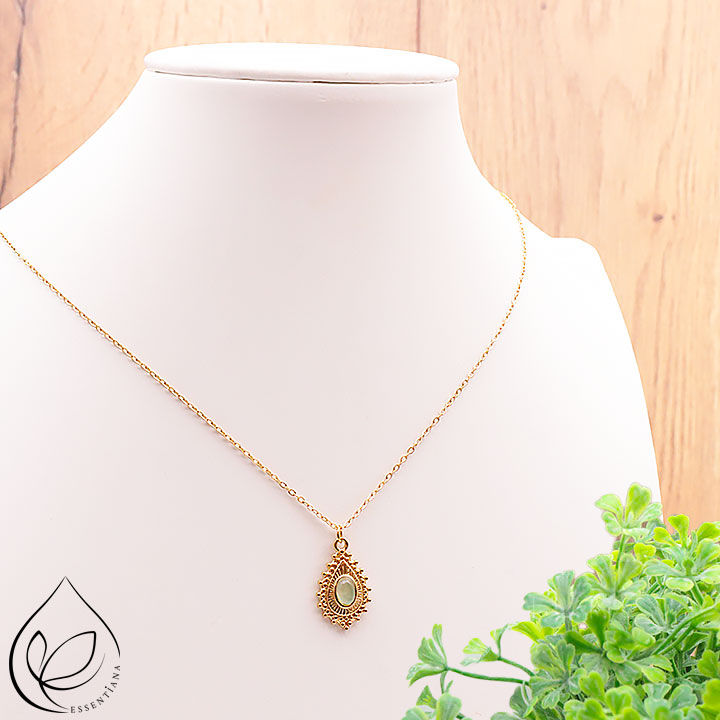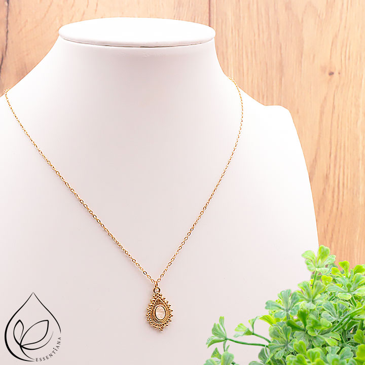 Collar Brillo dorado nácar, circonio, acero inoxidable