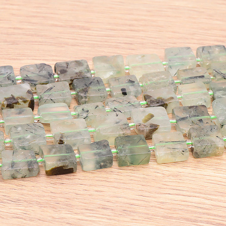 Hilo de perlas cuadradas de prehnita 14mm AA