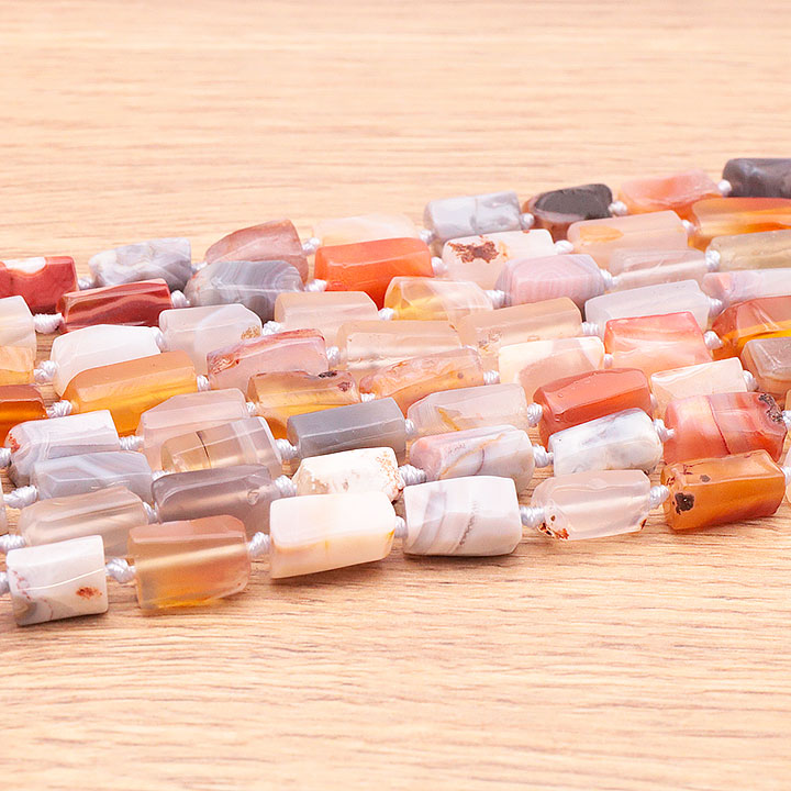 content:Hilo de perlas tubulares 08 x 12mm ágata Botswana AA