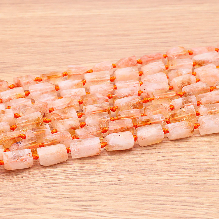Hilo de perlas tubulares 08 x 12mm citrina calentada A