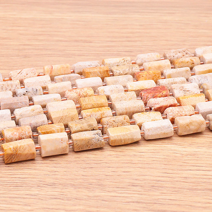 Hilo de perlas tubulares 08 x 12mm coral fósil A