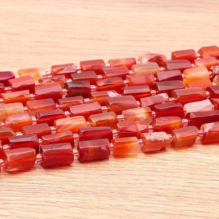 Hilo de perlas tubos 08 x 12mm cornalina A