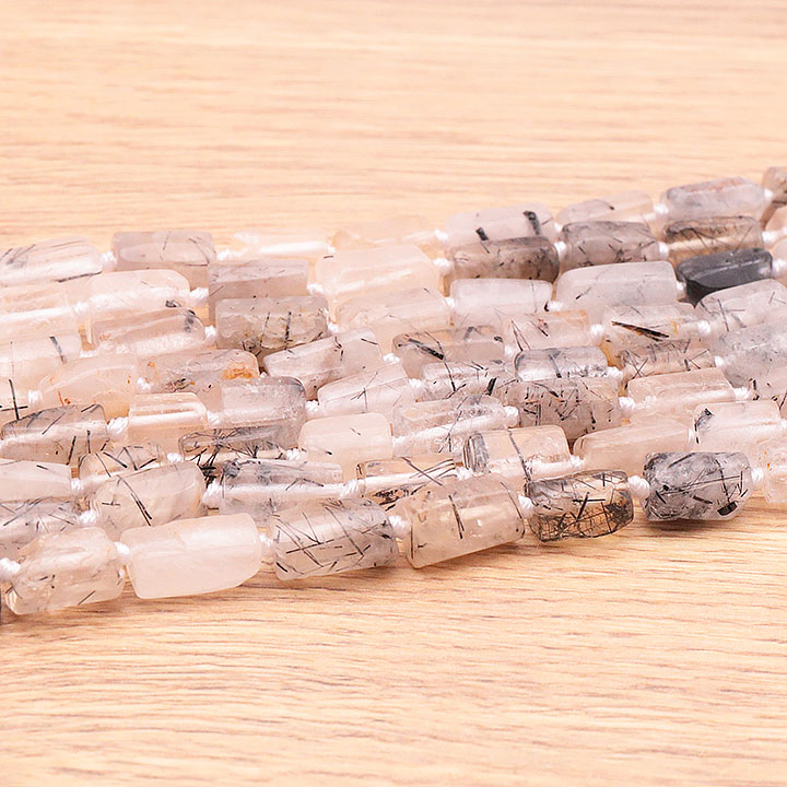 Hilo de perlas tubos 08 x 12mm cristal de roca turmalina A