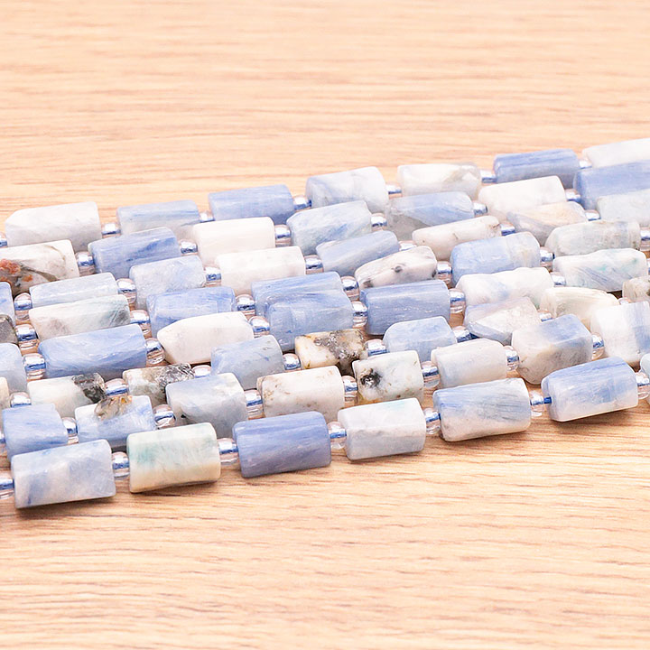 Hilo de cuentas tubulares 08 x 12mm cianita azul AB