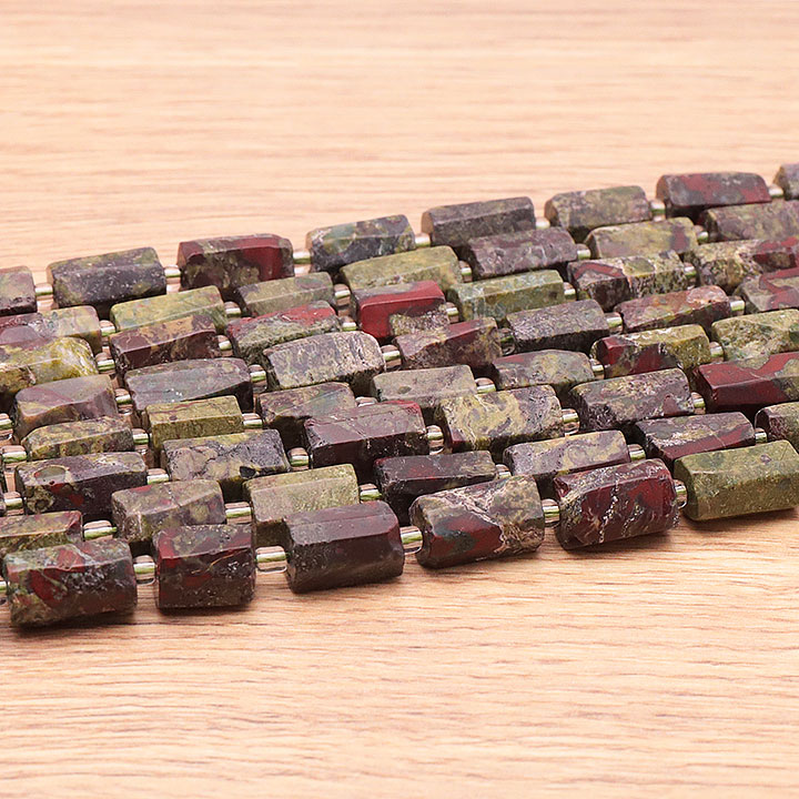 Hilo de perlas tubos 08 x 12mm jaspe sangre de dragón A