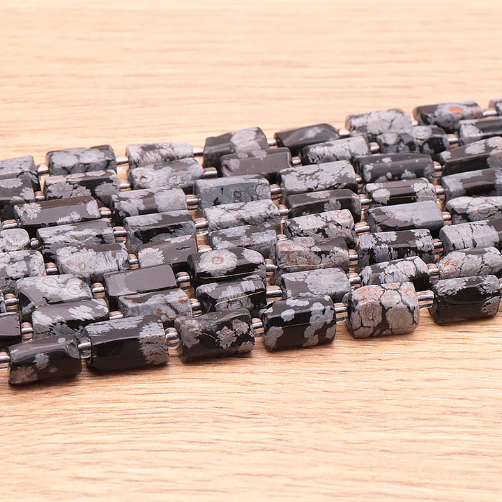 Set de cuentas tubulares de obsidiana con copos de nieve 08 x 12mm A