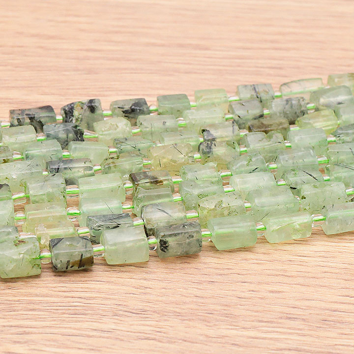Hilo de cuentas de tubo de prehnita AA 08 x 12mm