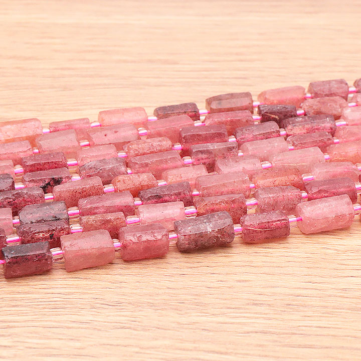 Hilo de perlas de tubo 08 x 12mm cuarzo fresa (hematites) AA