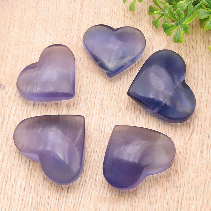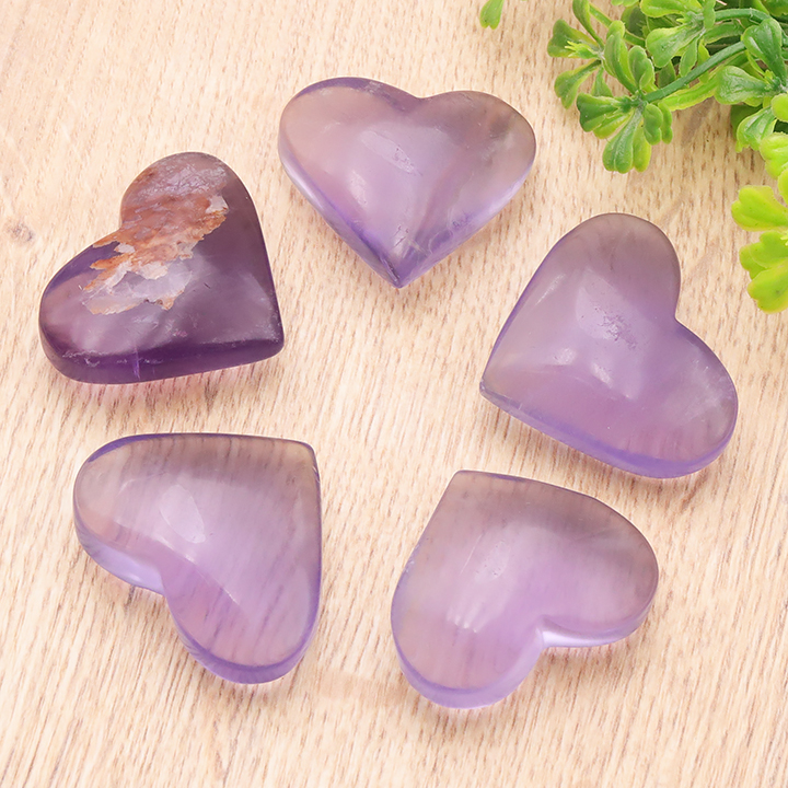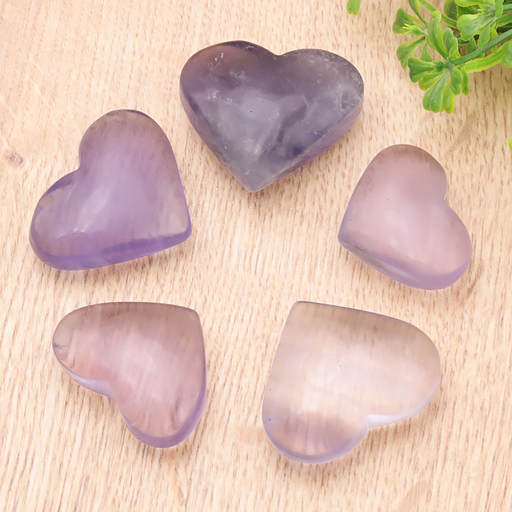 Galet corazón fluorita violeta AA 30 a 40mm (1 set)