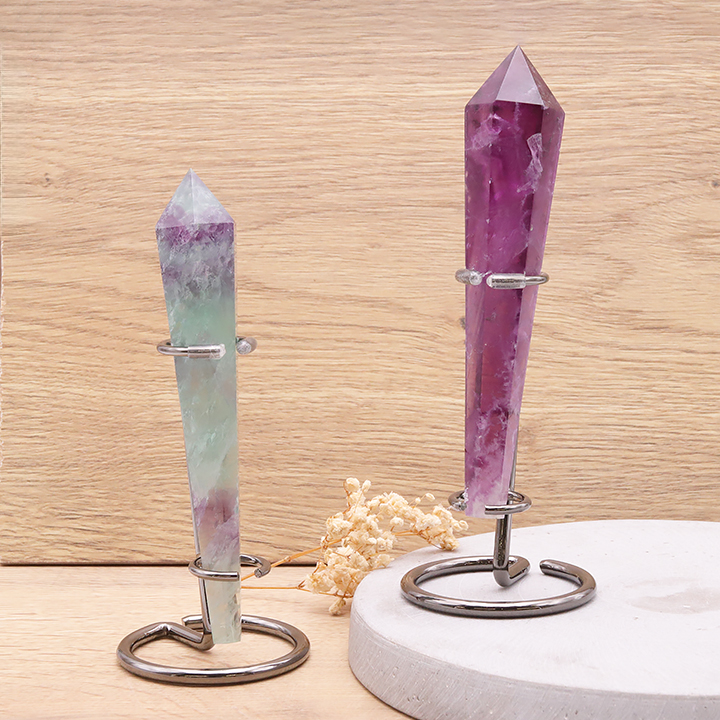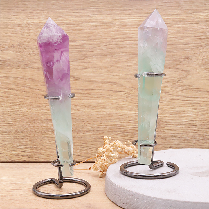 Puntas de cristal con base de fluorita multicolor AA+ 100 a 150g (1 pieza)