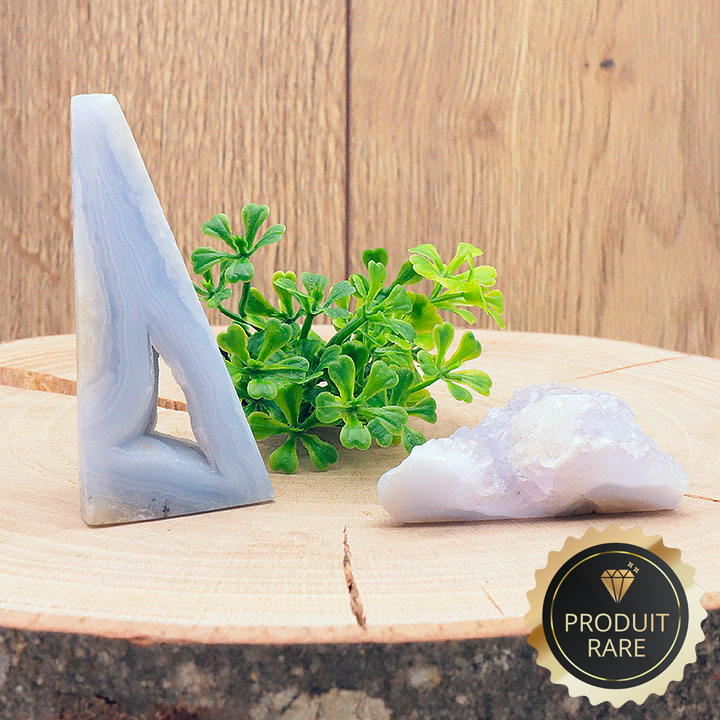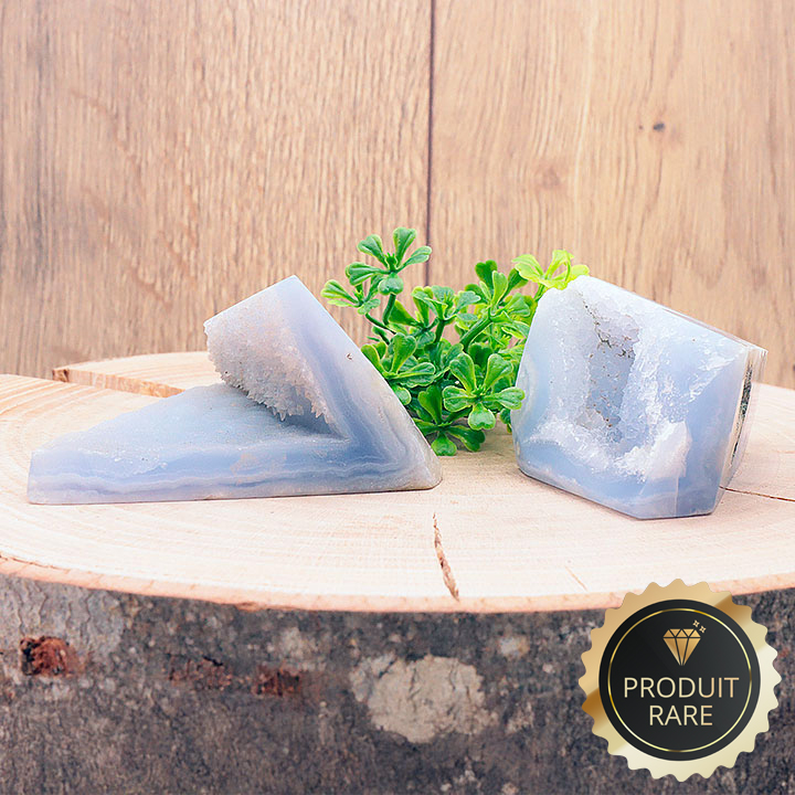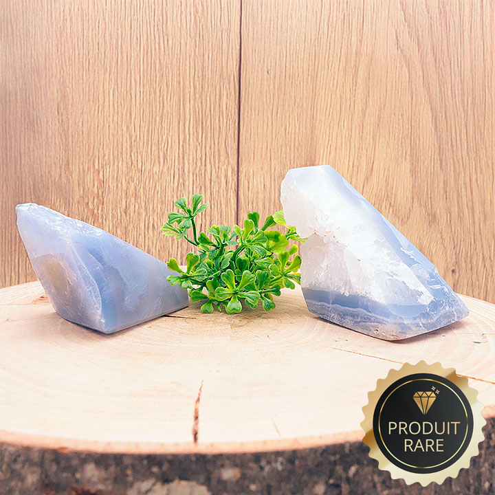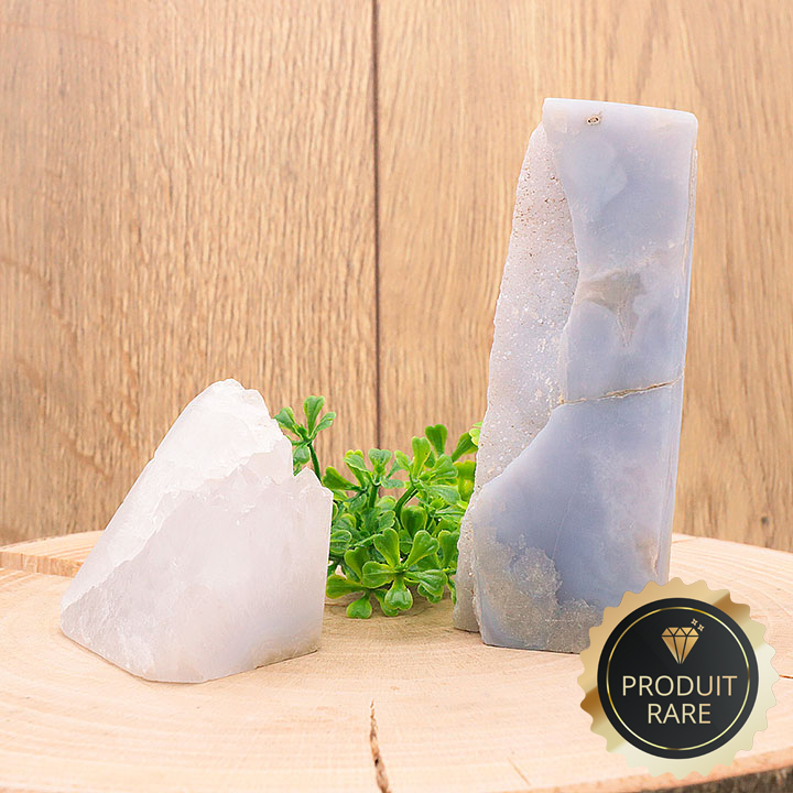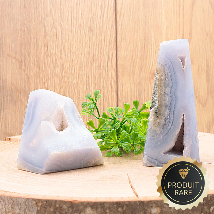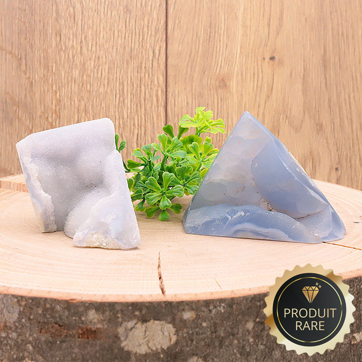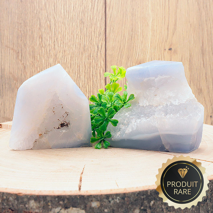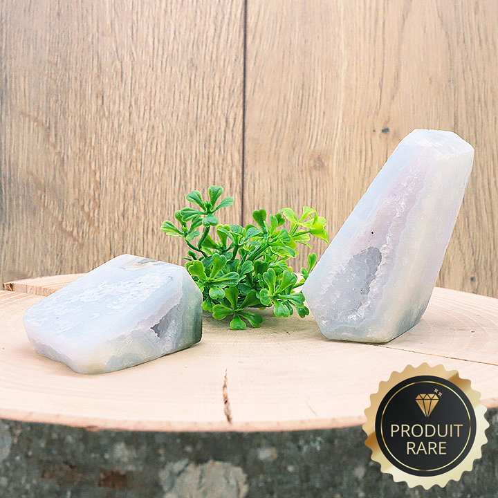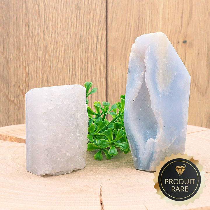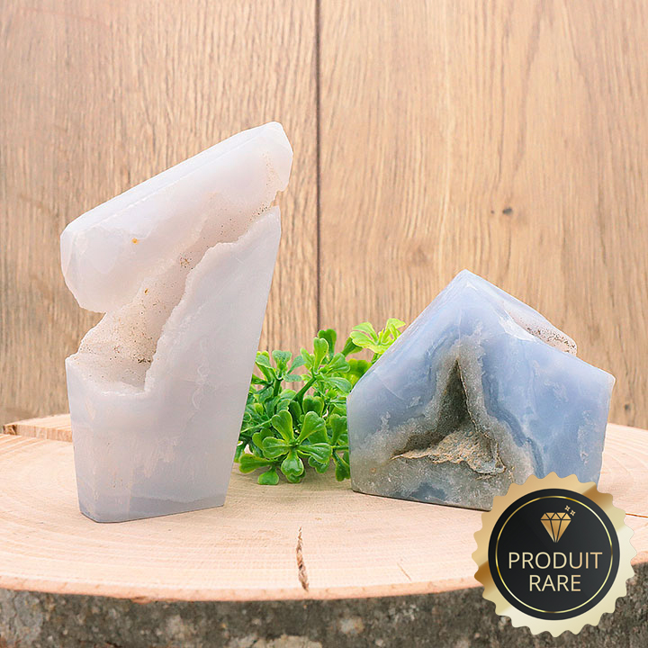 Cristales tallados calcedonia azul cristalizada Namibia AA 60 a 80g (set 2 piezas)
