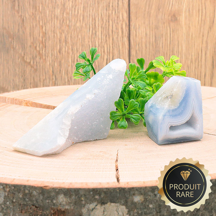 Cristales de calcedonia azul cristalizada Namibia AA 40 a 60g (set 2 piezas)