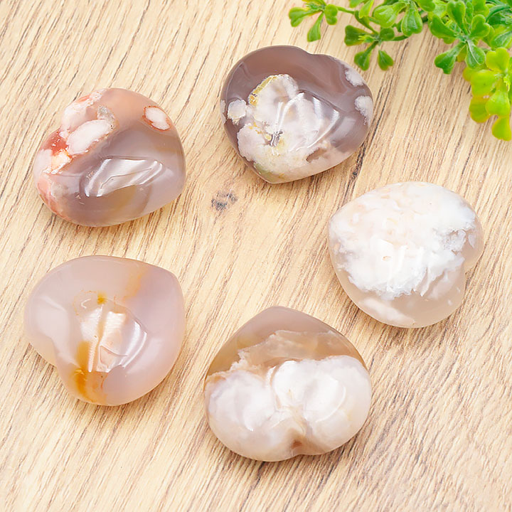 Galet corazón 30mm ágata flor de cerezo A (set de 5 piezas)