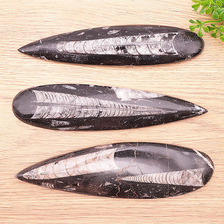 Pulseras Orthoceras. Piedras rodadas y piedras perforadas con orthoceras.