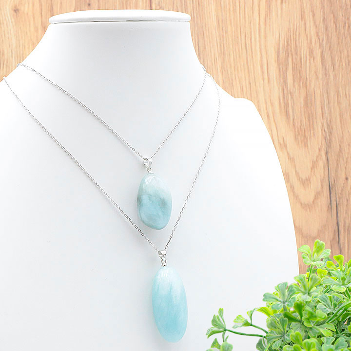 content:Colgante piedra rodada calcedonia azul A 15 a 30mm (set de 3 piezas)