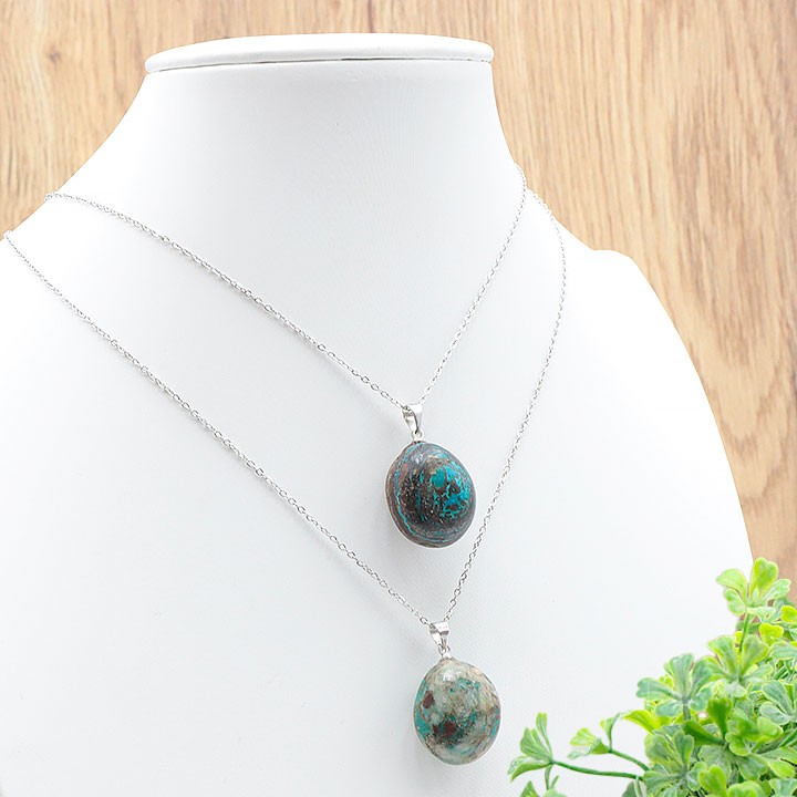Colgante de piedra rodada crisocola Peru AA 20 a 30mm (lote de 3 piezas)