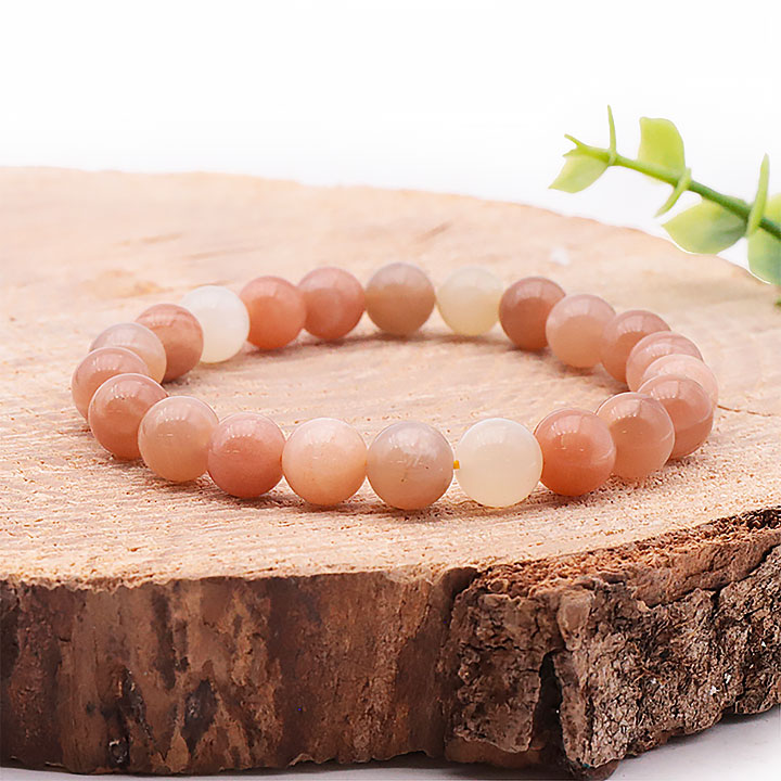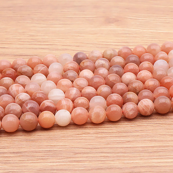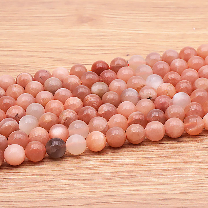 Pulseras y colgantes de piedra de luna. Piedras y cuentas de piedra lunar de diferentes colores.