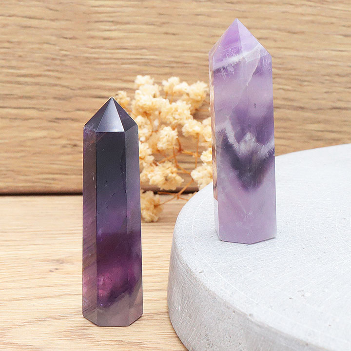 Punta de cristal de fluorita arcoíris con base AA 80 a 110g (1 pieza)
