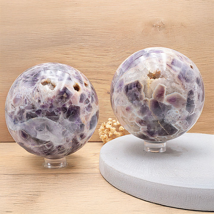 Esfera de amatista chevron AA 50 a 60 mm (1 set)