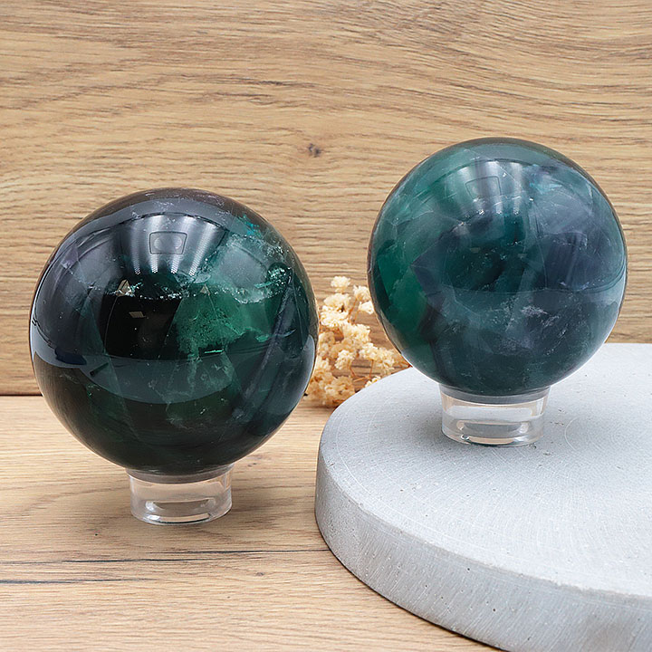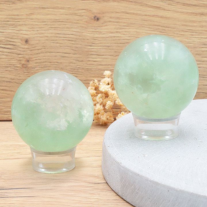 Esfera de fluorita verde AA 50 a 60mm (1 set)