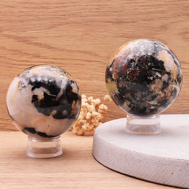 Esfera de turmalina negra sobre cuarzo AA 60 a 70mm (1 set)