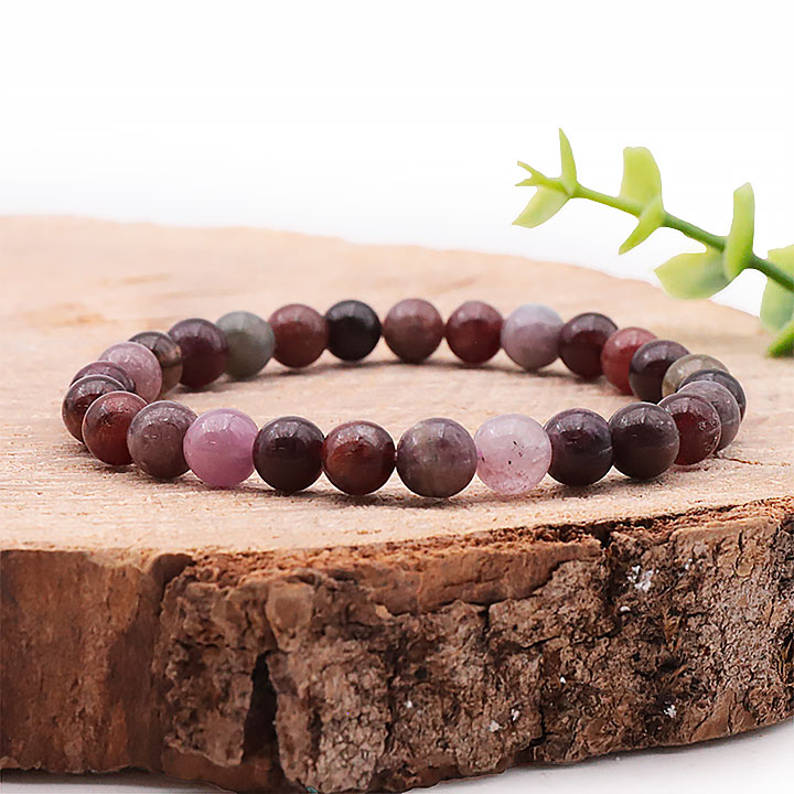 Pulsera de bolas de turmalina rosa de 6mm sobre eudialita A