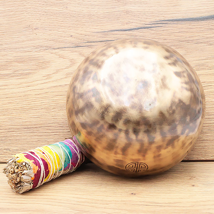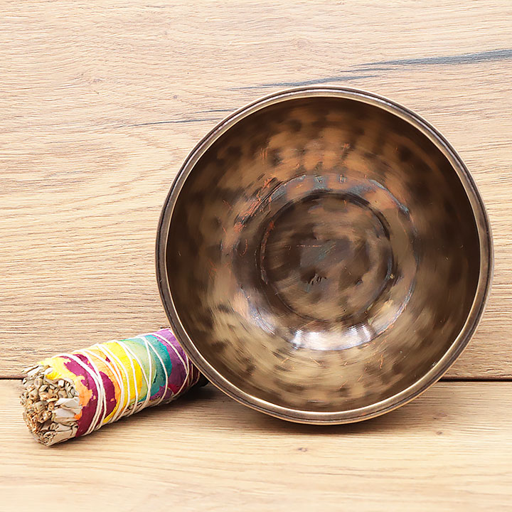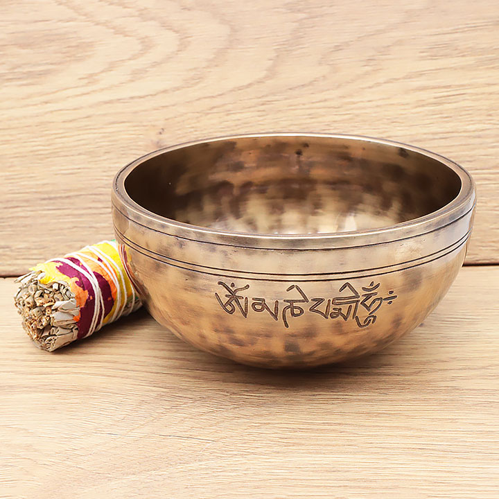 *Cuenco tibetano fabricado artesanalmente con una aleación de calidad superior para una resonancia profunda y duradera. Compuesto de 98% de bronce puro (cobre 72% estaño 26%); complementado con bajas trazas de aleaciones metálicas tradicionales (hierro, zinc, aluminio...) para mejorar el timbre y la prolongación de la nota.