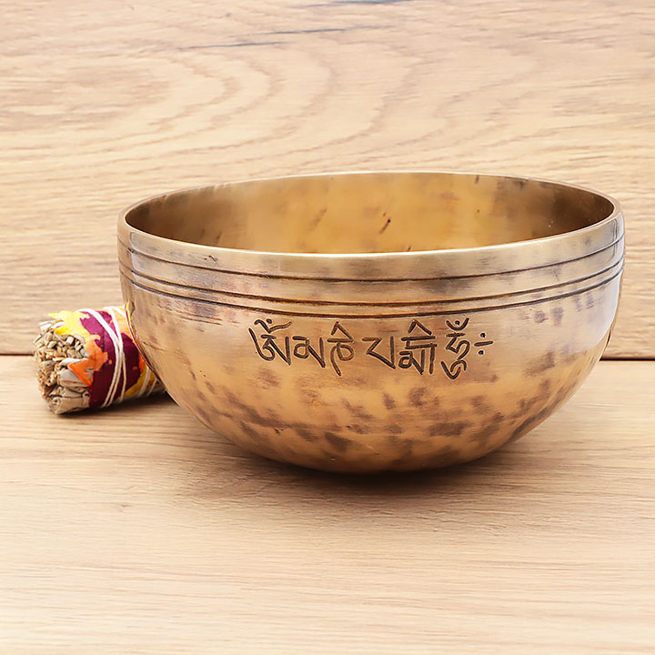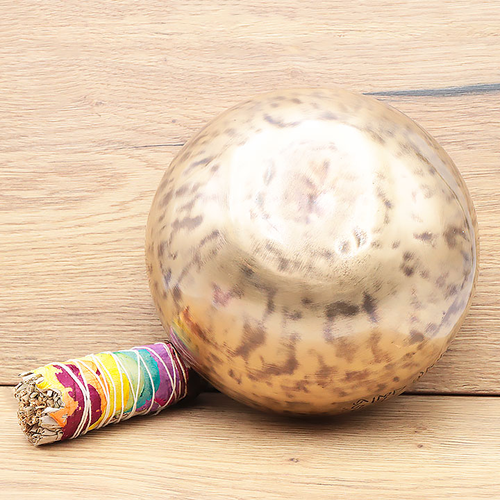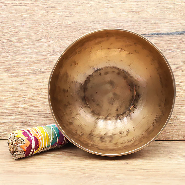*Cuenco cantador fabricado de manera artesanal con una aleación de calidad superior para una resonancia profunda y duradera. Compuesto de 98 % de bronce puro (72 % cobre, 26 % estaño); complementado por ligeras trazas de aleaciones metálicas tradicionales (hierro, zinc, aluminio...) para mejorar el timbre y la duración de la nota.