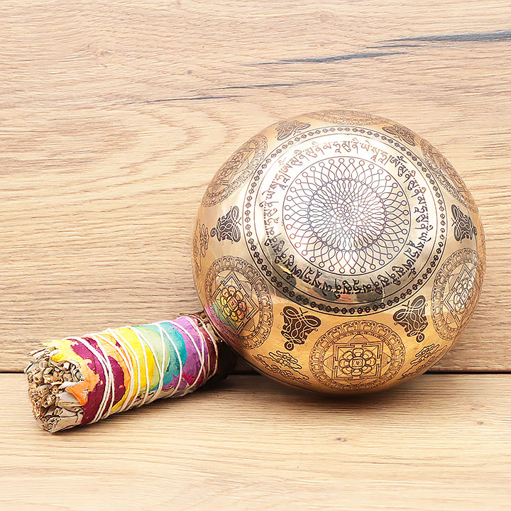 *Cuenco cantante fabricado de manera artesanal con una aleación de calidad superior para una resonancia profunda y duradera. Compuesto por un 98% de bronce puro (72% cobre, 26% estaño); complementado con pequeñas trazas de aleaciones metálicas tradicionales (hierro, zinc, aluminio...) para mejorar el timbre y la duración de la nota.