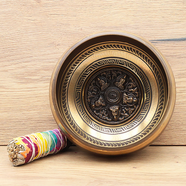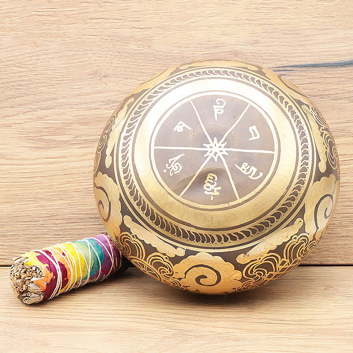 Cuenco cantador diseñado a partir de una aleación de alta calidad que ofrece una resonancia profunda y duradera.