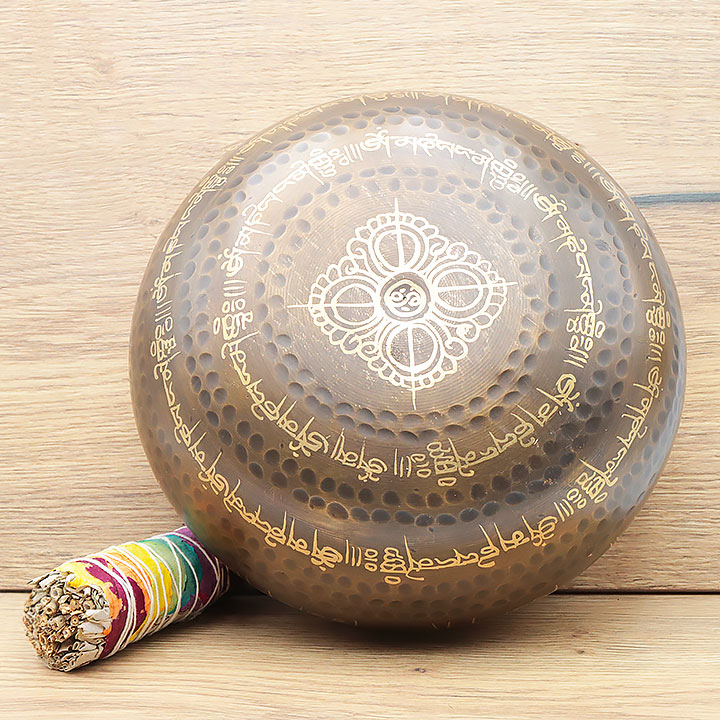 Cuenco tibetano diseñado a partir de una aleación de calidad superior que ofrece una resonancia profunda y duradera.