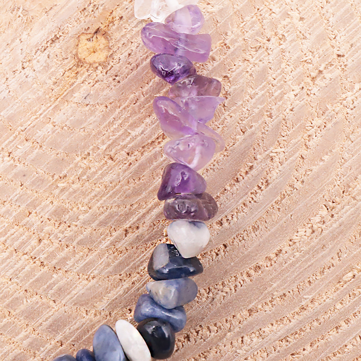 Piedras: Ametista - Cristal De Roche - Sodalita - Aventurina Verde - Aventurina Amarillo - Obsidiana Noire - Cornaline Aspecto : Chispeante / Pulido. Diámetro (en cm): 16 - 18 cm