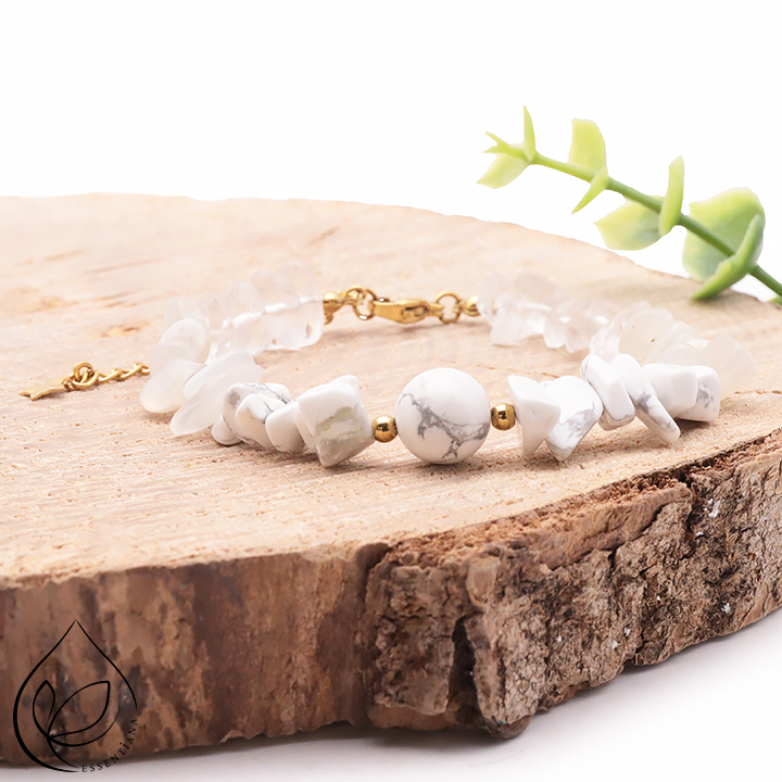Piedra(s) : Cristal de Roca - Howlita Blanca - Piedra de Luna Beige -