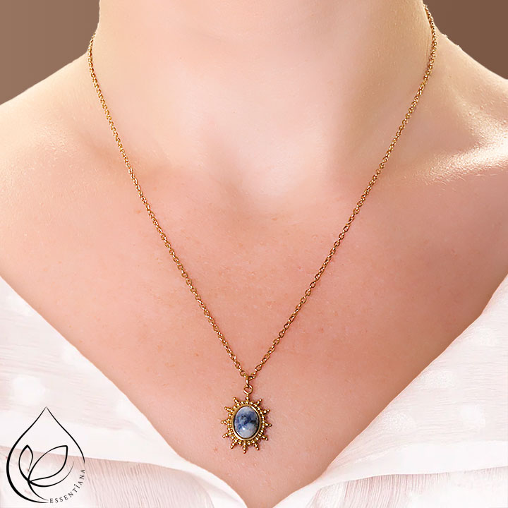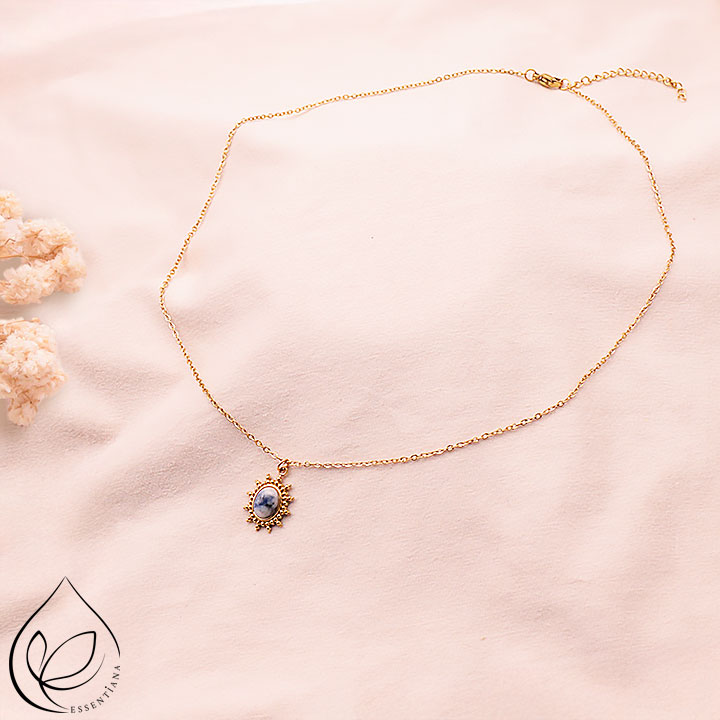 Tamaño del collar: 44 a 49cm Tamaño de la piedra (en mm): aproximadamente 06x08 Tamaño del dije (en mm): aproximadamente 13x18 Metal: Acero inoxidable. ✔ Inox 304 – Calidad profesional Nuestros joyas están hechas de acero inoxidable 304, la referencia mundial para joyas duraderas e hipoalergénicas. Esta aleación garantiza brillo, resistencia y confort para el uso diario. *Para preservar sus joyas, no poner en contacto con agua.
