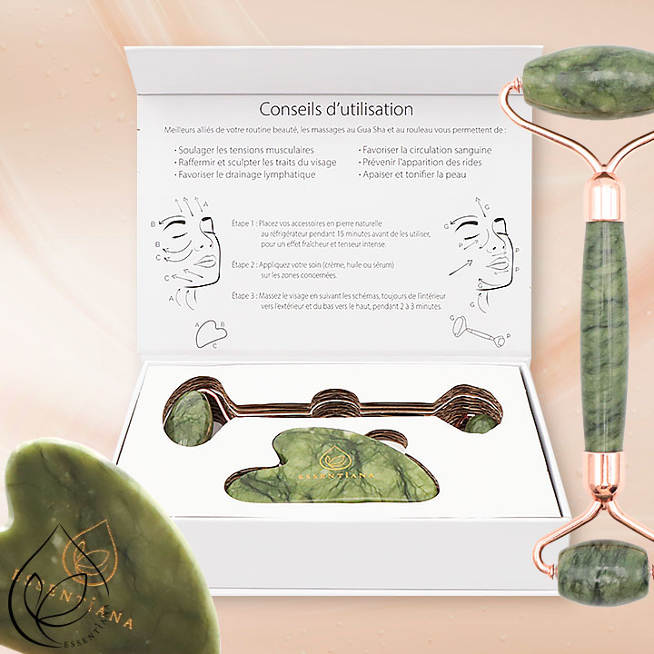 Tamaño del gua sha: 80mm Longitud del rodillo de masaje: +/-140mm