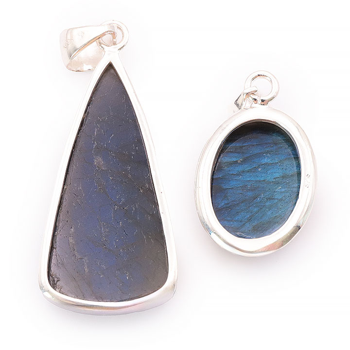 Categoría(s): Colgantes - Colgantes de Plata 925 Piedra(s): Labradorita Peso del set: 19,57g Número de colgantes en el set: 2 Tamaño del colgante más pequeño (sin asa): 22mm Tamaño del colgante más grande (sin asa): 45mm Color(es): Negro / Reflejos / Azul Calidad: AAA = Mejor calidad posible